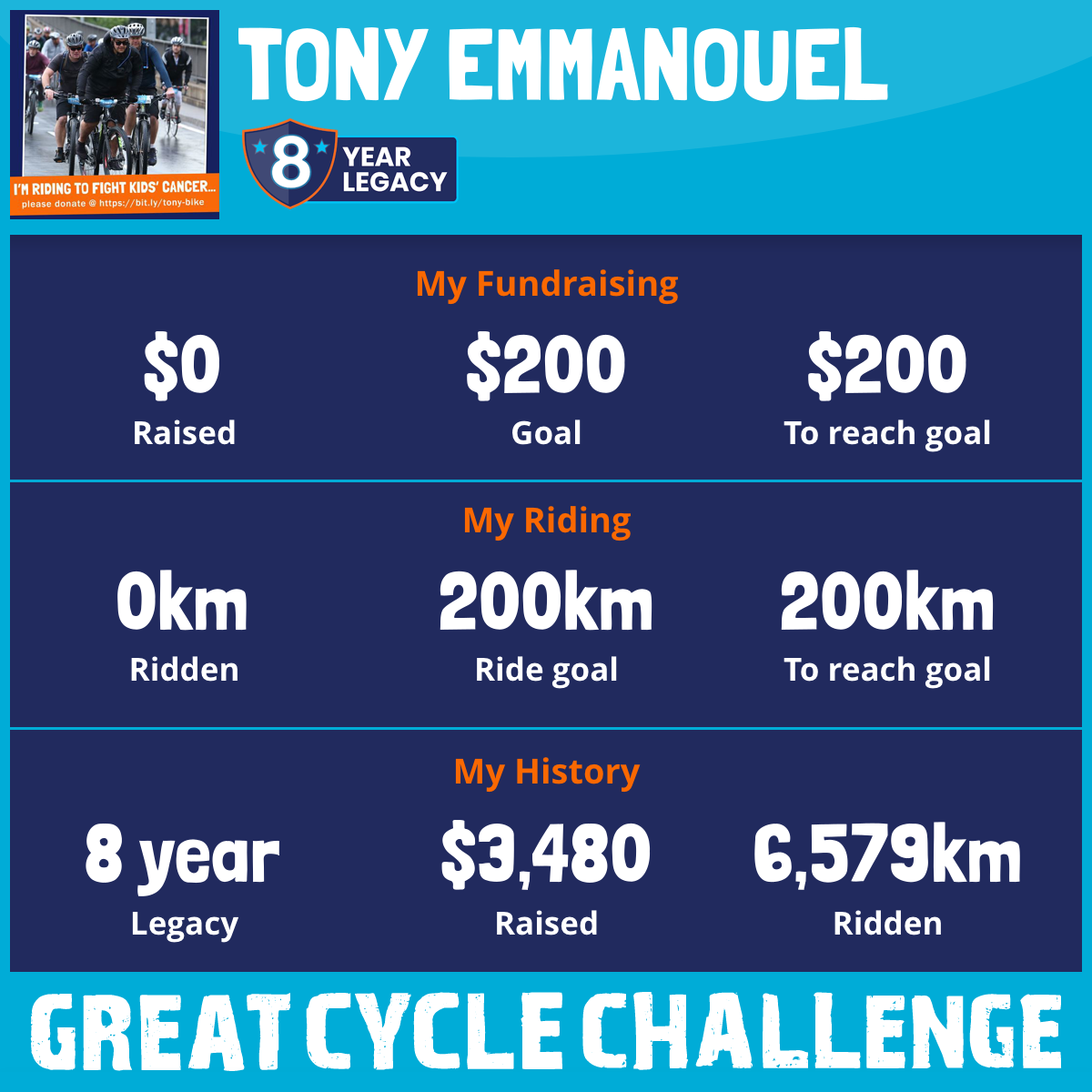 I am riding 200 km to fight kids' cancer and save little lives. Please sponsor me to support my challenge!