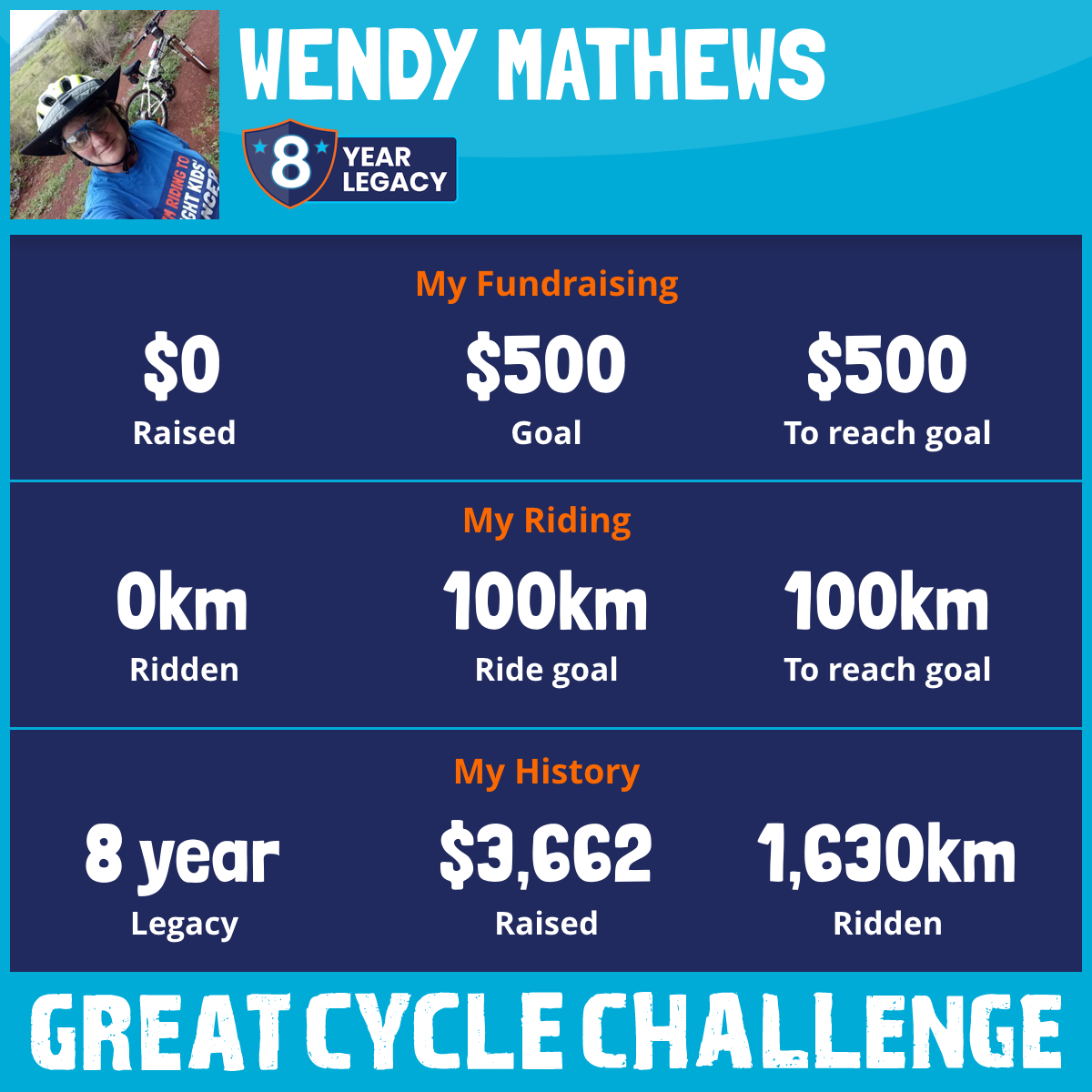 And so I am riding and raising funds to support the Children's Medical Research Institute to continue their work into the prevention, diagnosis, treatment and finding a cure for childhood cancer.
