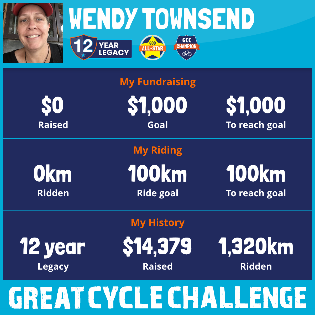 104 km Ridden$1,293 Raised2020