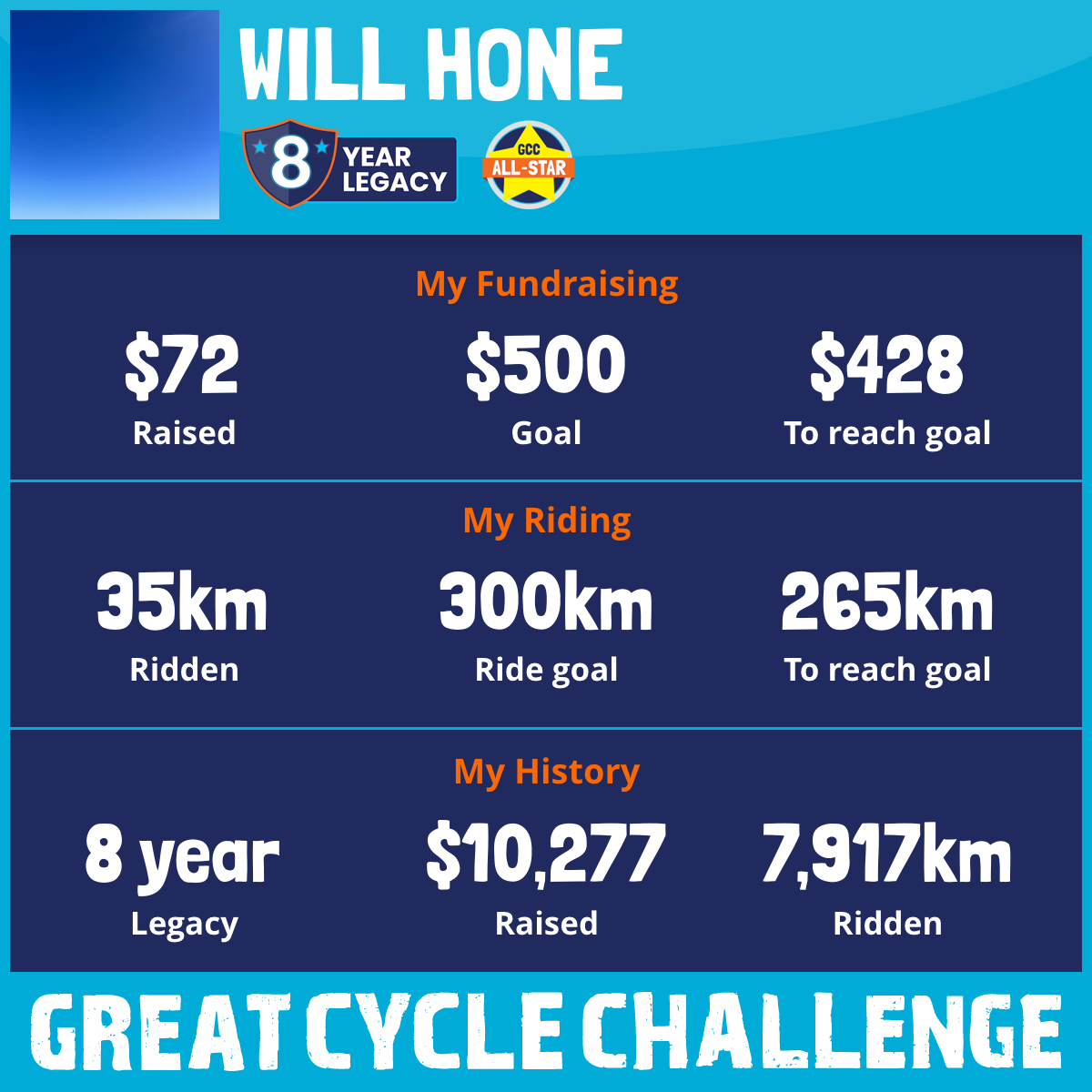 And so I am riding and raising funds to support the Children's Medical Research Institute to continue their work into the prevention, diagnosis, treatment and finding a cure for childhood cancer.