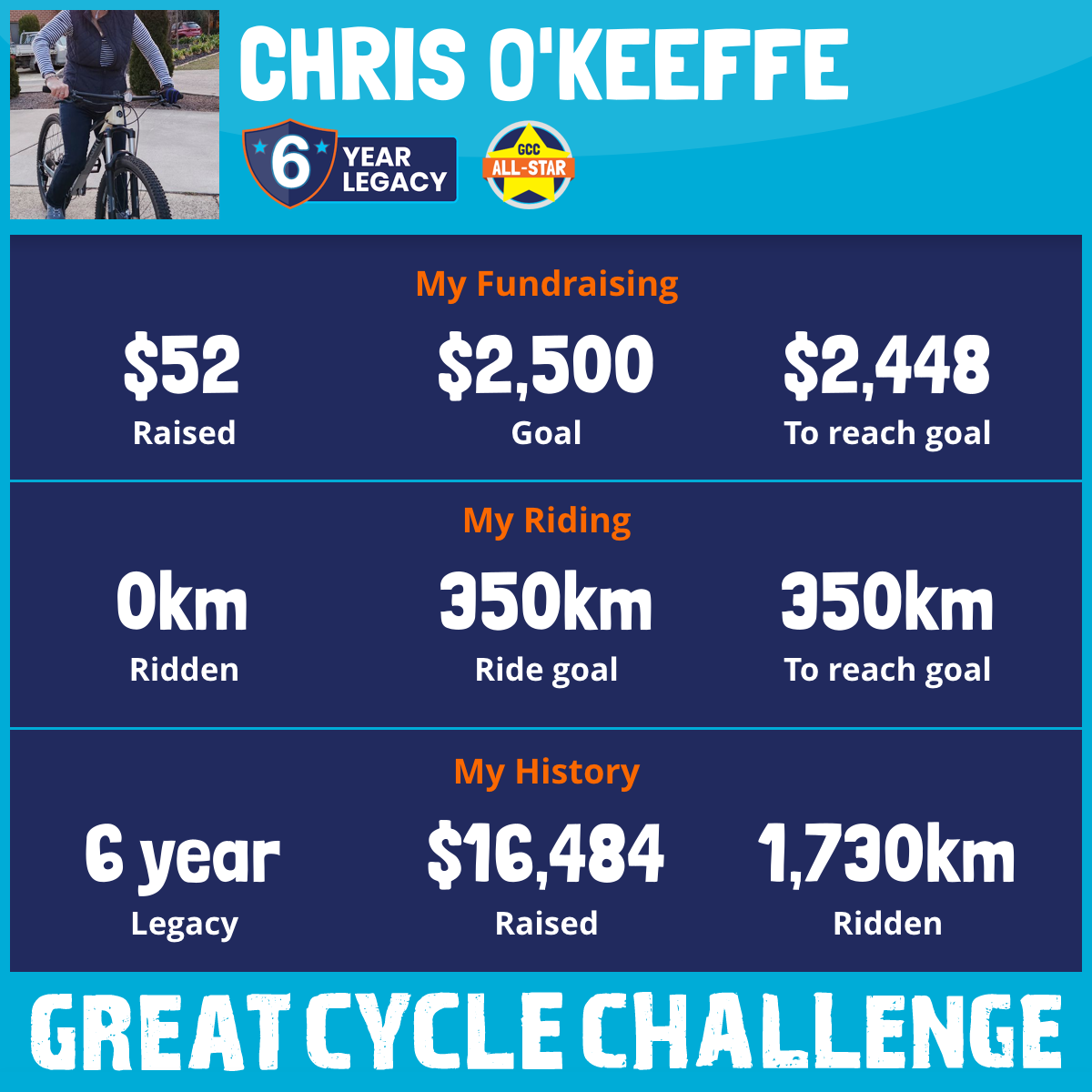 Last year, I was back in the saddle and participated in my 5th Great Cycle Challenge, passing my target goal of 320km and actually riding 372km. I was overwhelmed by the generosity of my family & friends and raised $3,631. I am back hoping to raise funds again for this worthwhile cause, starting with a target of $2,500. I will ride some of my kms on a stationary bike at the gym (when there is inclement weather or as part of my early morning gym visit); some around my local area when I am back in Canberra (and find magpie-swooping-free routes); but the first few kms will have to be jog/walking around the picturesque Adelaide Hills where I will be for a week without a bike. I will be thrilled to be able to raise valuable funds to support the Children’s Medical Research Institute.