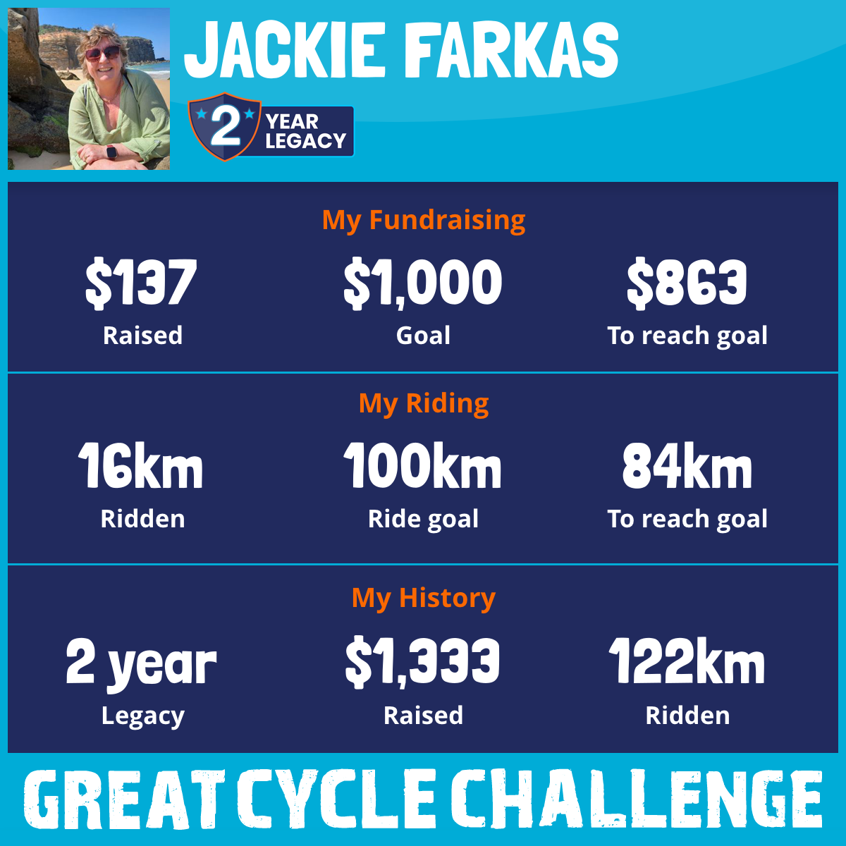 And so I am riding and raising funds to support the Children's Medical Research Institute to continue their work into the prevention, diagnosis, treatment and finding a cure for childhood cancer.