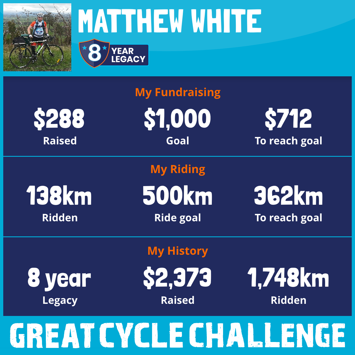 And so I am riding and raising funds to support the Children's Medical Research Institute to continue their work into the prevention, diagnosis, treatment and finding a cure for childhood cancer.