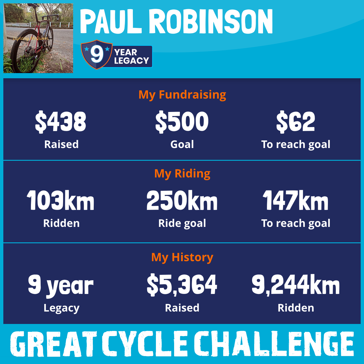 And so I am riding and raising funds to support the Children's Medical Research Institute to continue their work into the prevention, diagnosis, treatment and finding a cure for childhood cancer.