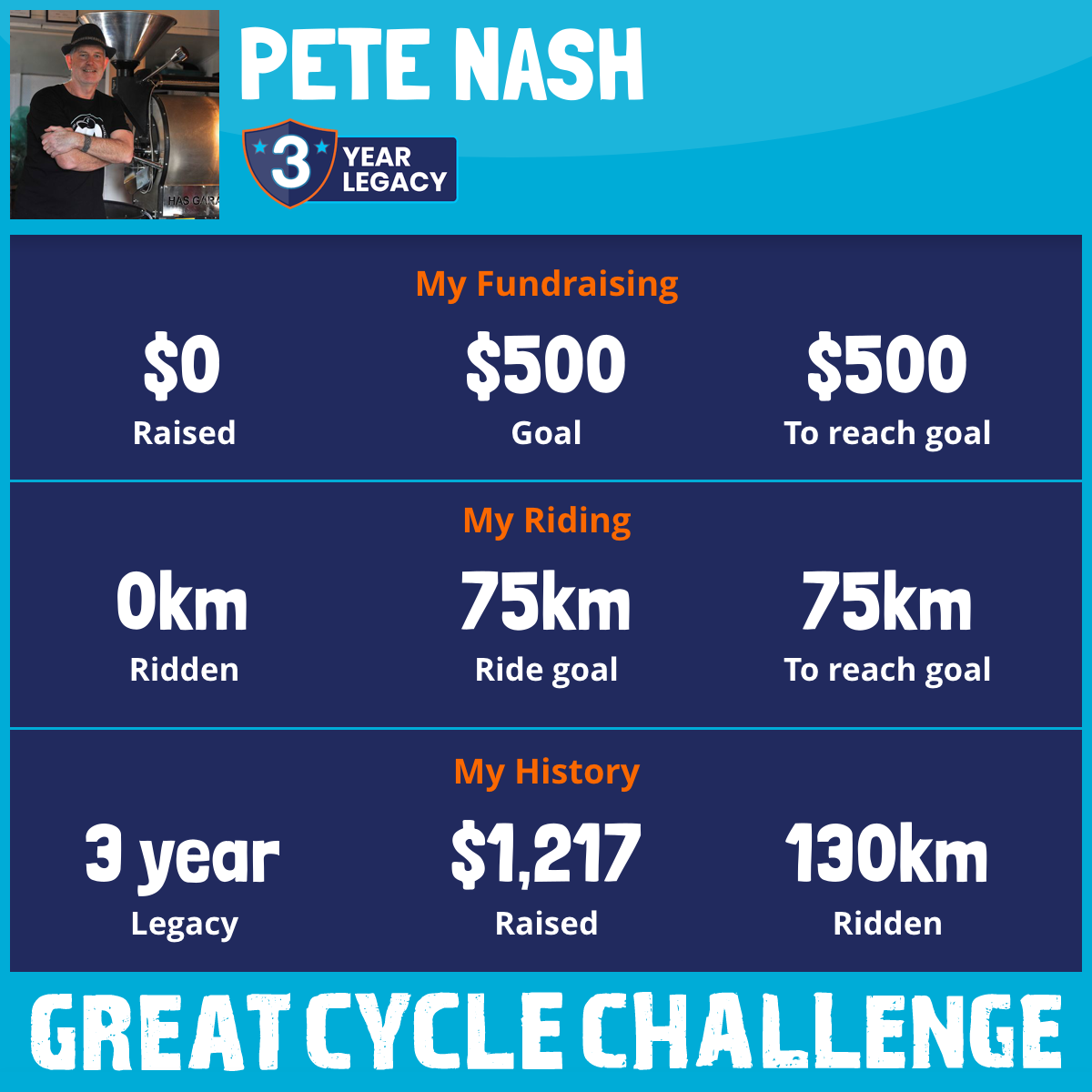 I am riding 75 km in memory of my dad, Terry. Please sponsor me and support my challenge to fight kids' cancer and save little lives.